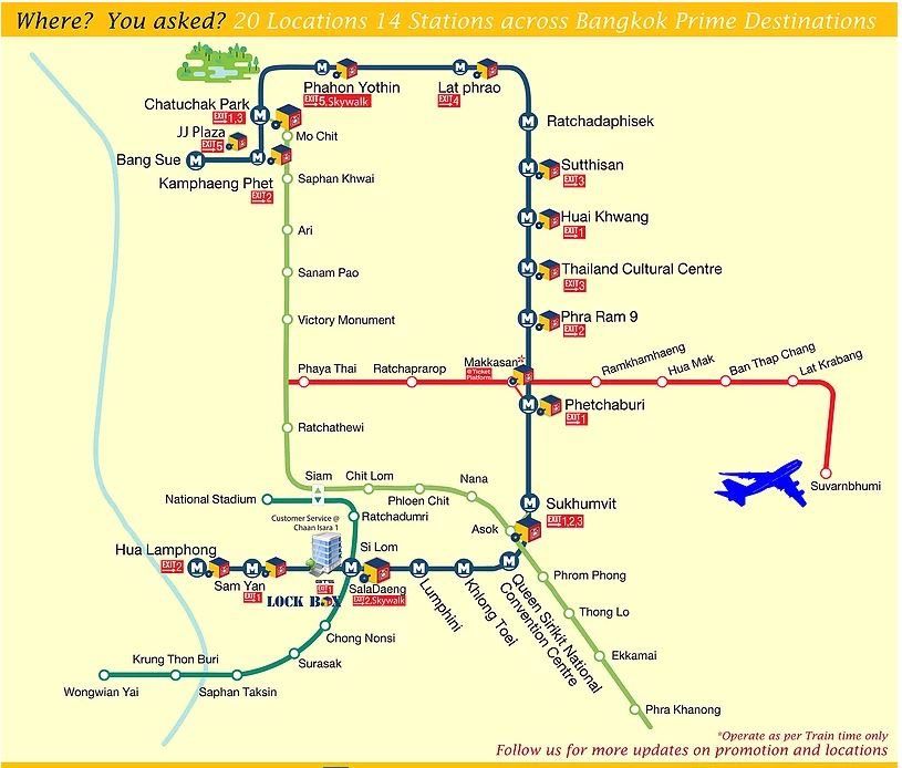 3.06.2025 Es ist mir oft genug passiert. Am letzten Tag muss ich mittags um 12 Uhr aus dem Hotel auschecken. Aber mein Flieger Richtung Deutschland startet erst um Mitternacht. Eine Möglichkeit: im Hotel aufbewahren lassen und später zurück kommen. Besser: preiswert in einen Locker an einer U-Bahn/Skytrain Station bis zum Abend. Falls es mit dem Airport Rail Link zum Flughafen geht: