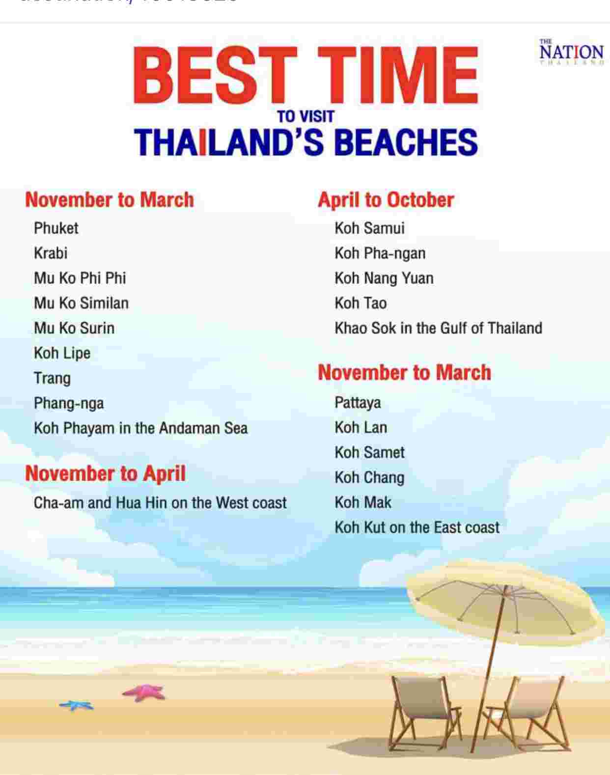 Den Südwest Monsun, der Mit Regen , wind und Wellen vor allem die Strände und Inseln der Andamanensee trifft. An Oststränden auf den Inseln dieser Region sieht es etwas besser aus. Die Regenzeit dauert von Mai/Juni bis etwa September. In dieser Zeit ist der Golf von Thailand wesentlich angenehmer.