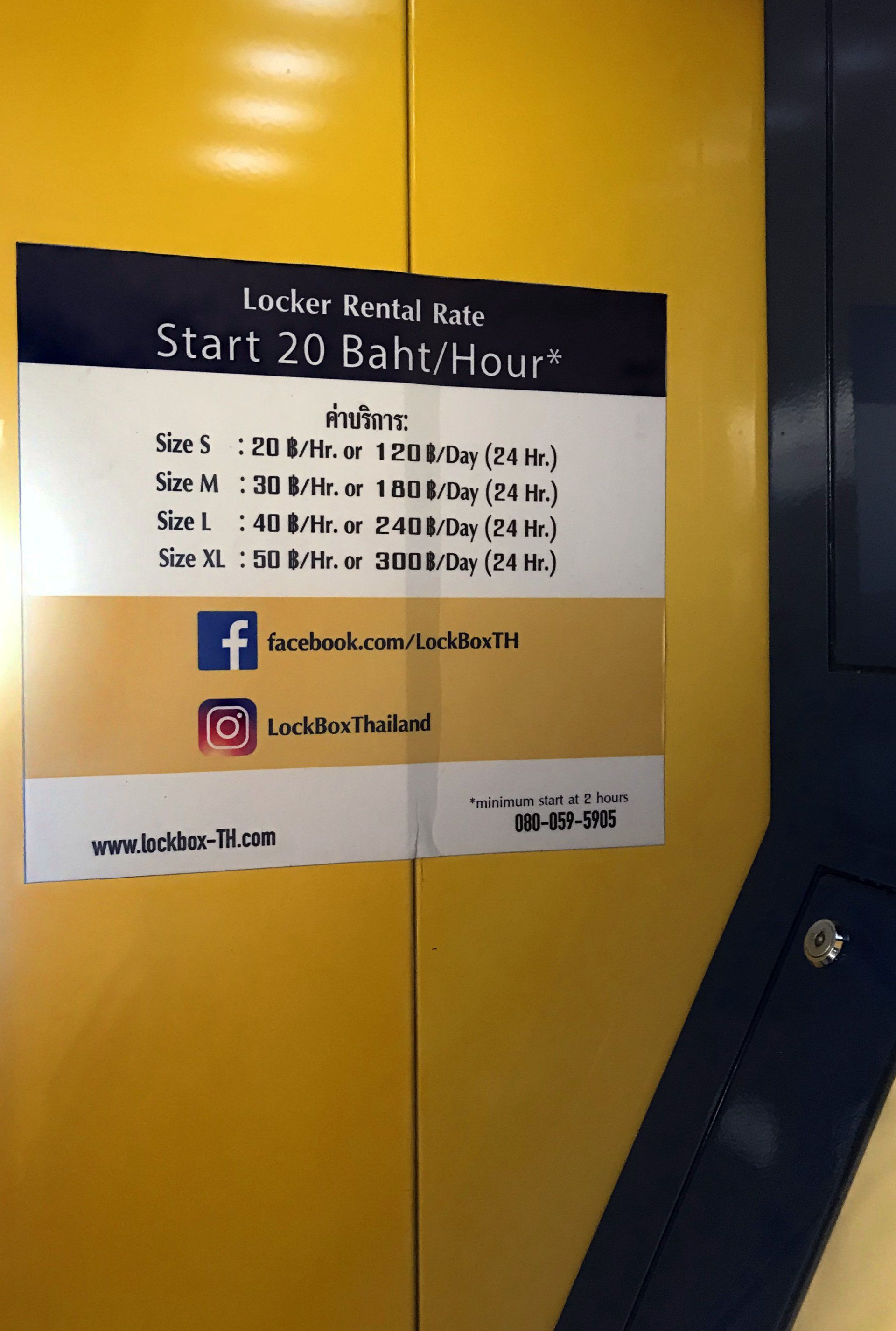 Ob Sie nun ihr ganzes Gepäck dabeihaben oder Ihre Einkäufe schleppen. Wenn Sie entspannt ihre letzten Stunden in Bangkok verbringen möchten oder vor dem Rückflug, der meistens spätabends stattfindet, Ihr Gepäck einfach zwischenlagern möchten: Diese Schließfächer, die mittlerweile an vielen Skytrain und U-Bahn Stationen entstanden sind, helfen Ihnen wirklich weiter. Kosten pro Stunde je nach Größe des Fachs zwischen 1 und 2 € pro Stunde, 5 - 11 € pro Tag!
