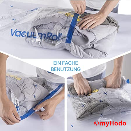 Kleidung rollen statt Falten! Wenn Sie zusätzlich einfache Vakuum-Beutel benutzen, können sie enorm viel Platz (bis zu 80%) sparen! Ich nutze solche Beutel seit Jahren. Eine kleine Investition, die aber wirklich Erleichterung bringt.