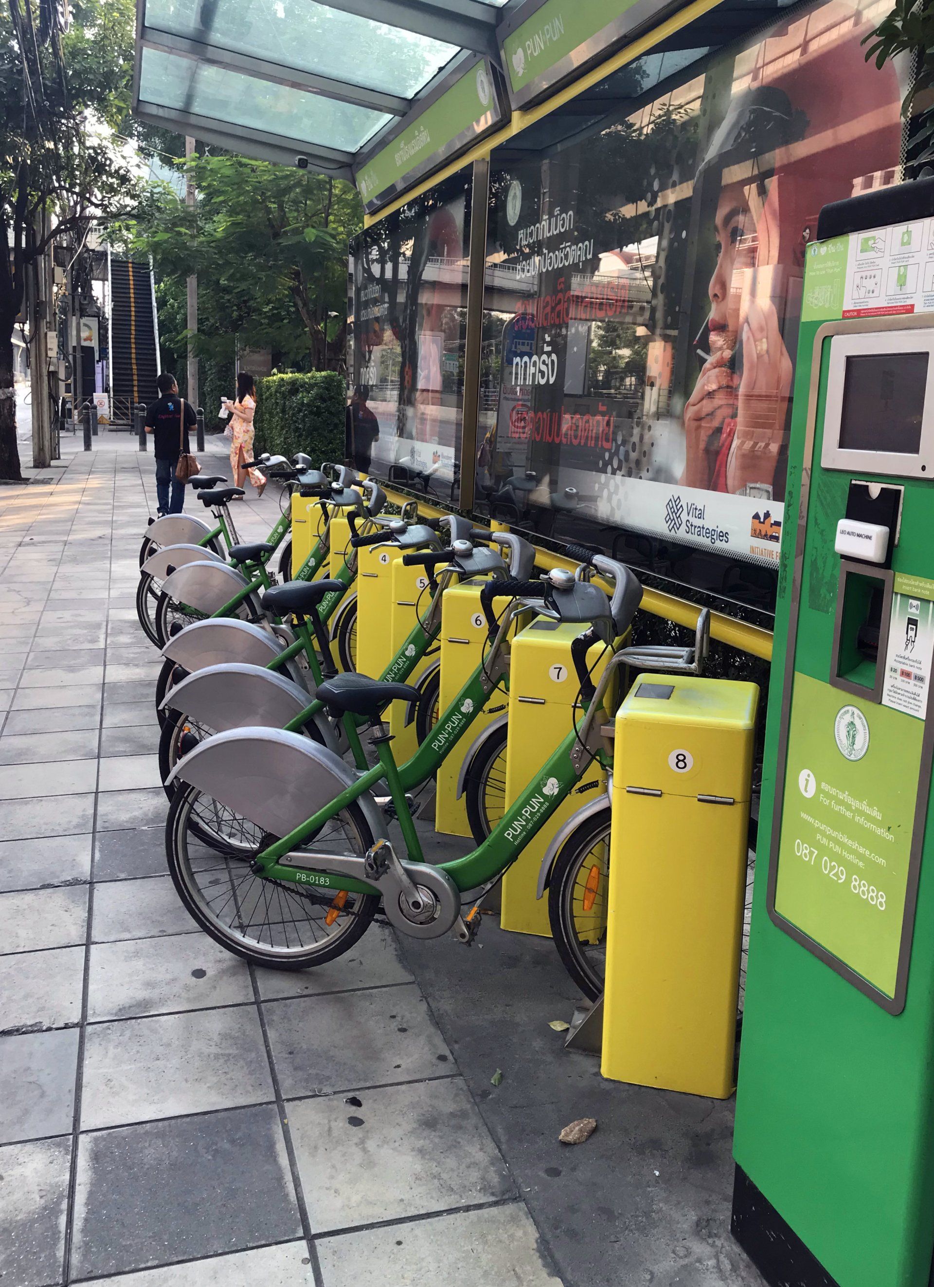Vor Jahren noch undenkbar. Aber mittlerweile gehören Fahrräder zum Stadtbild. Man muss ja nicht gleich auf der Sukhumvit im dichtesten Verkehrsgewühl fahren. Es gibt Fahrrad Verleihstationen vor allem rund um die Sathon Road. Aber auch Fahrrad-Tour Agenturen wie "Follow Me", oder auch Go Bangkok Bycicle Tours, die wirklich sehenswerte mehrstündige Touren anbieten!