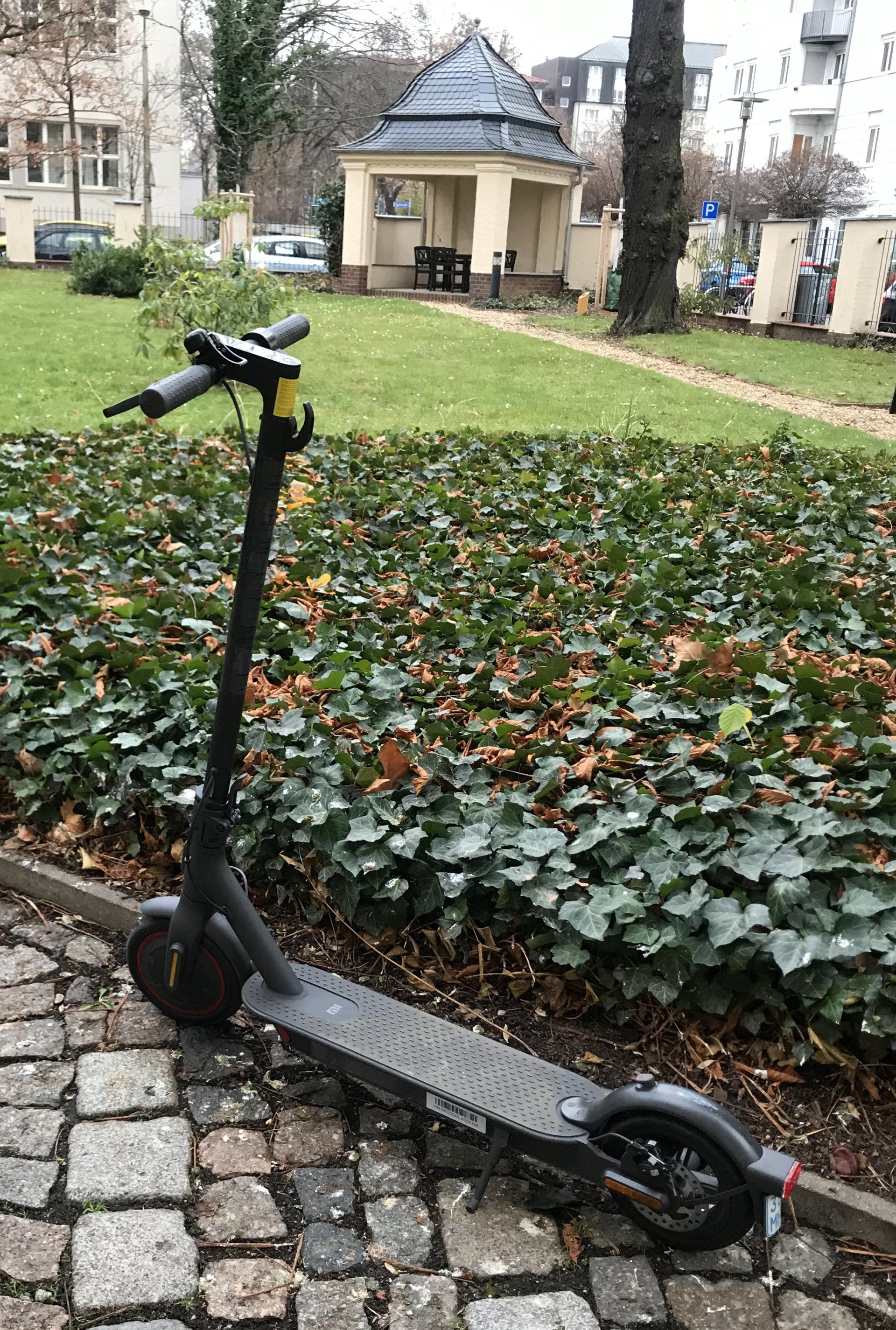 Das ist mein E-Scooter. Höchsttempo 20 km/h (in Thailand erlaubt 25 km/h).