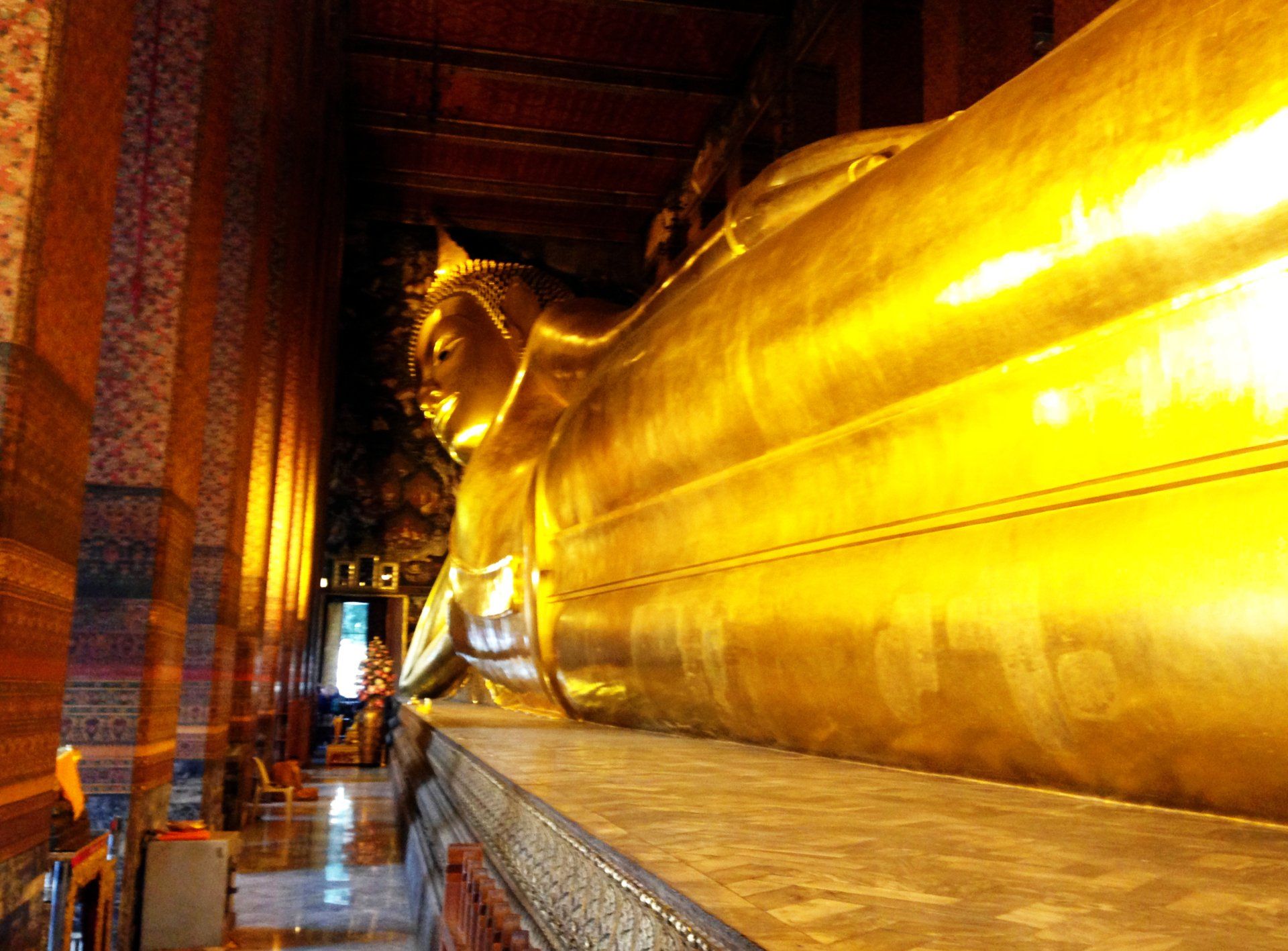 Der 45 m lange liegende Buddha ist die Hauptattraktion der Tempelanlage. Aber auch die umliegenden Temple mit ihren kleinen versteckten Plätzen sind sehenswert wie auch die vier riesigen Chedis (Pagoden) in der Mitte der Anlage.