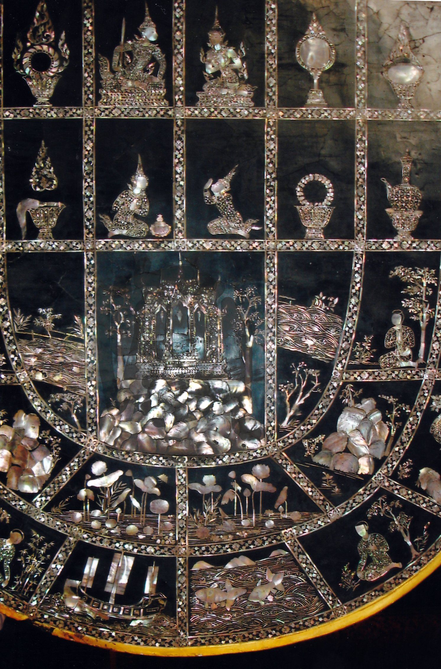 108 aus Perlmutt gefertigte königliche und mythologische Symbole.
