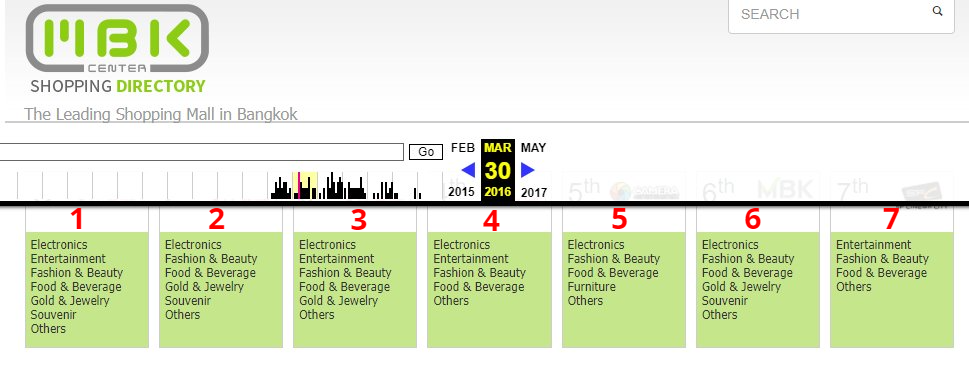 Rolex, Swarovski, Tissot, Adidas Originals, Calvin Klein, Daniel Hechtler, FCUK, Liz Claiborne, Pena, Bata, Marks and Spencer, Apple Center, Guy Laroche, Playboy, Benetton, Chaps, Guess, Hush Puppies, Kipling, Morgan, Esprit, Giordano, Clarks, Nokia, AIS, DTAC, Starbucks, Auntie Anne's, Toys "R" Us, Modernform, Panasonic, Dapper, Lacoste, Swatch etc.