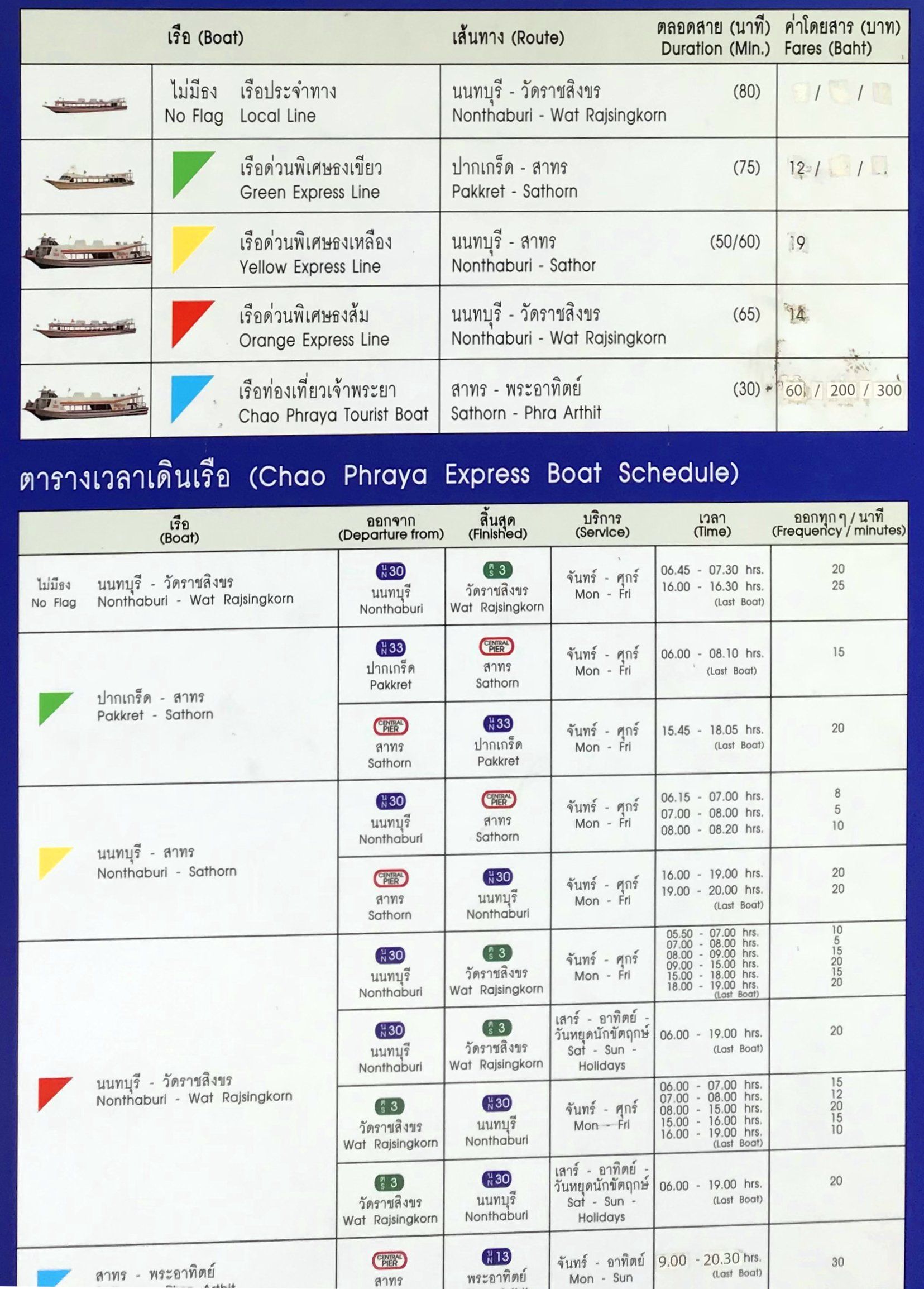 The express boats sail with different flags. Be sure to! Orange flag boats are best for you because they go to all major tourist destinations. The "no flag" boats, also known as locals, stop at every pier! This could be interesting for you if you want to explore off the beaten track!