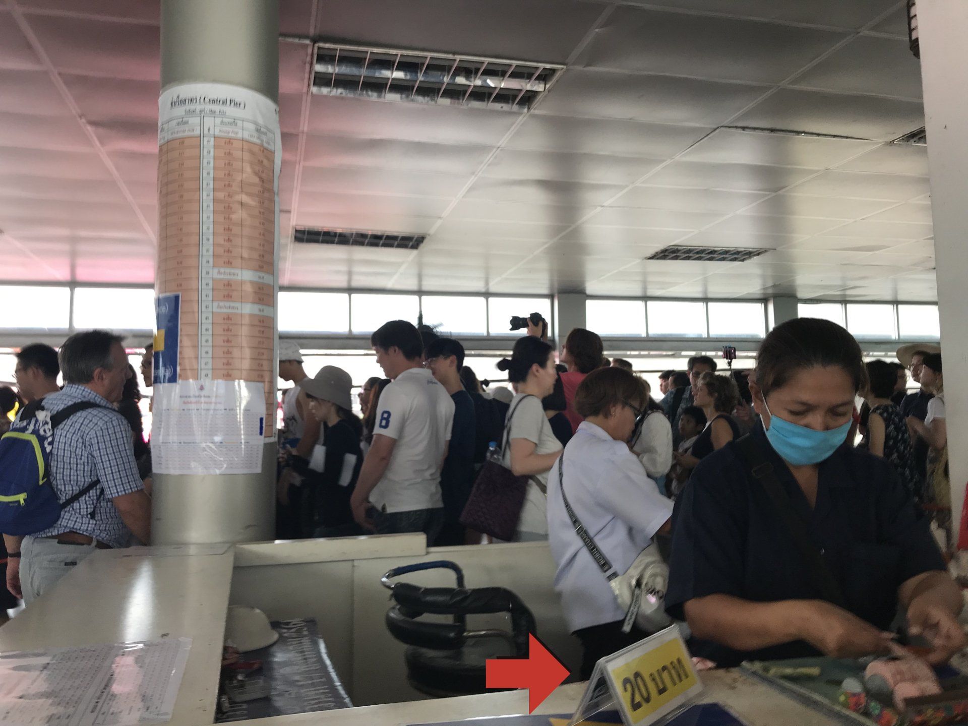 If you went down the stairs you will come to the pier. Friendly people try to send you to the big counter on the left. STOP! Since it is expensive;) Next to it on the right is an inconspicuous narrow passage with a simple table. This way please. That's the gateway to the cheap express boat!