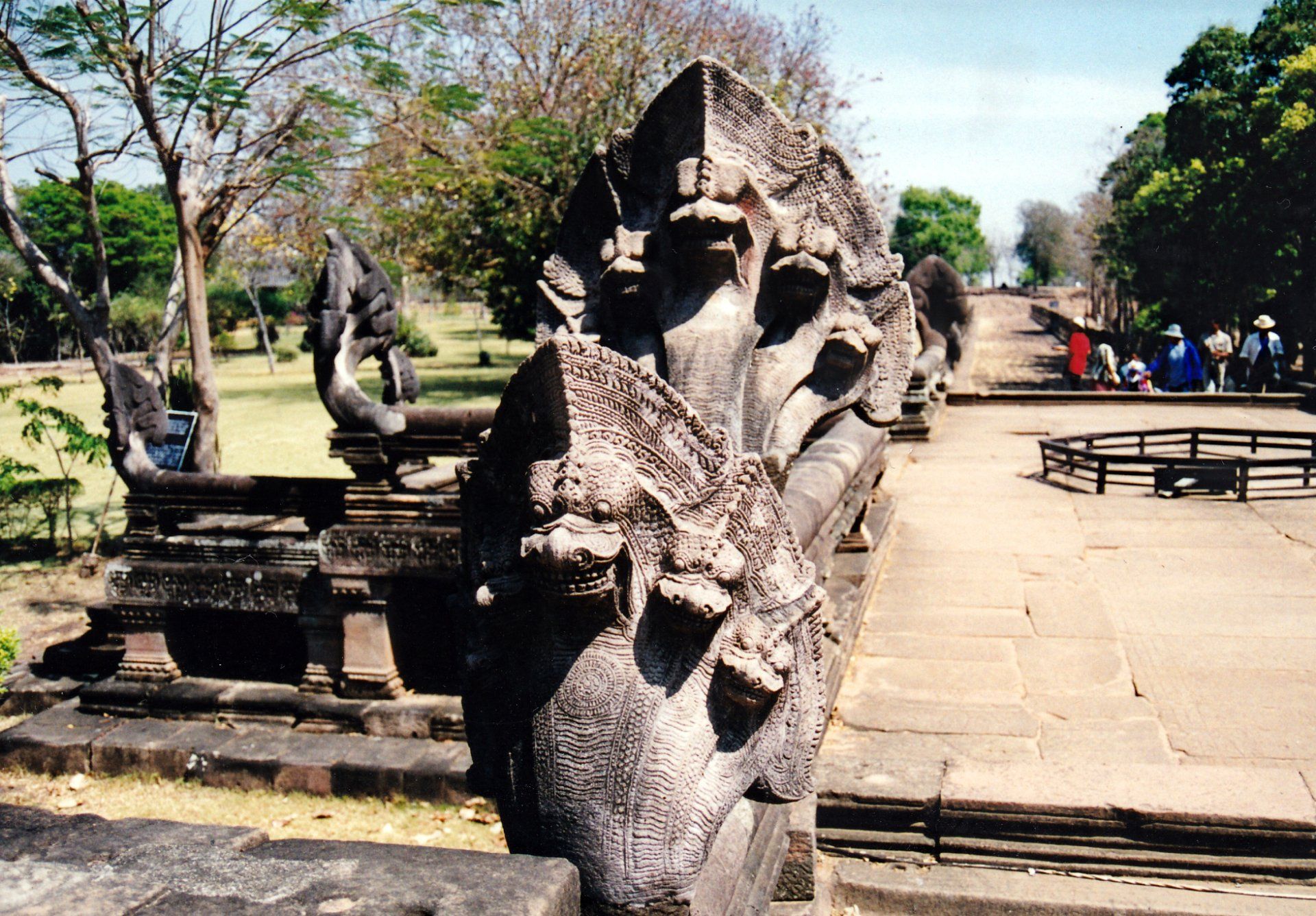 Die hinduistische Anlage liegt 65 km südlich von Buriram, also 1 Stunde Fahrtzeit entfernt, auf einem erloschenen Vulkan 400 m hoch über der weiten Ebene. Ein phantastischer Ausblick! Für mich ist dieser majestätische Tempel der schönste Bau aus Khmer Zeiten in Thailand. Entstanden in der der Blütezeit Angkor Wats zwischen dem 11. und 13. Jahrhundert wird seine Bedeutung schon dadurch ersichtlich, dass er mit einer Königsstraße direkt mit der Hauptstadt des Khmer Reiches verbunden war. Die Anlage ist der Gottheit Shiva gewidmet. Der zentrale Haupttempel entstand zur Zeit des größten Khmer Herrschers Suryavarman II. Den Tempelberg über die wunderbare Treppenanlage zu besteigen hat etwas bewegend Meditatives.