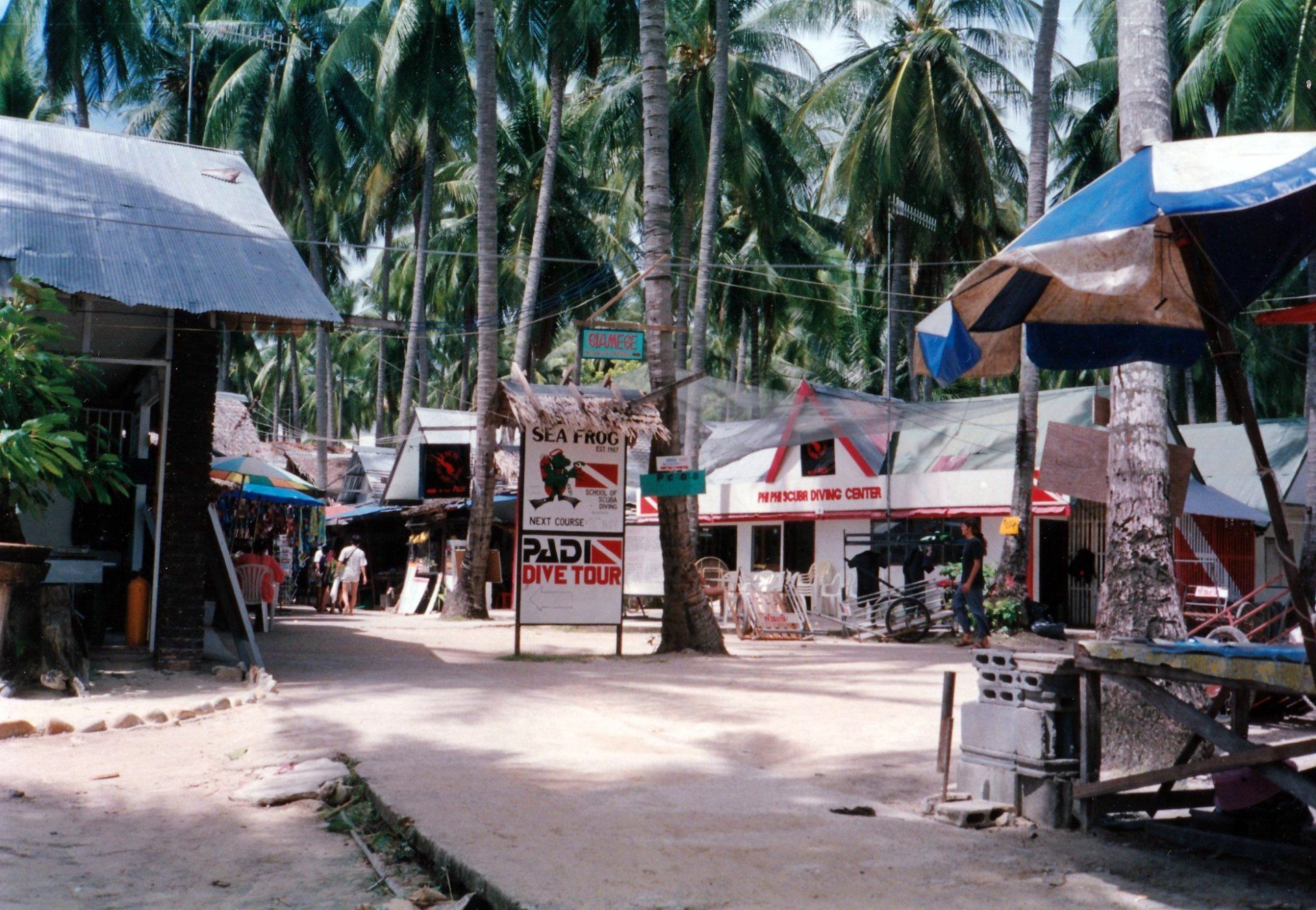 Hier am Strand waren frühe kleine Dive Shops und Restaurants in einfachen Hütten für die Backpacker. Die Landzunge war dicht mit Palmen bewaldet.