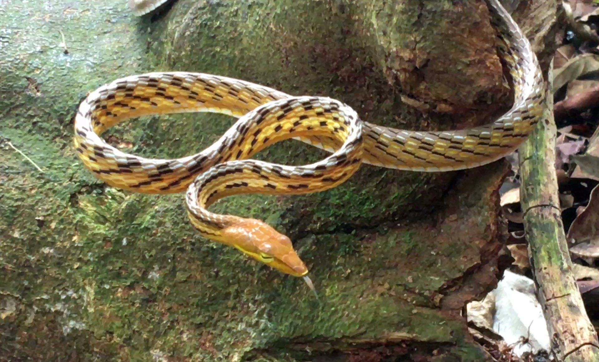 Eine Viper wartet völlig unbeweglich auf Beute.