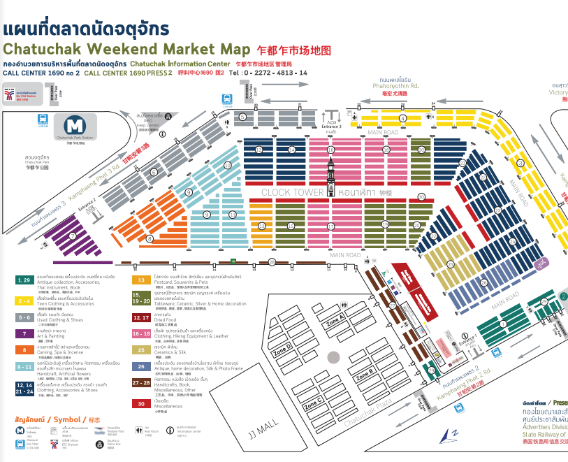 Größter Markt Thailands mit mehr als 10000 Ständen! Sie bekommen hier alles, von Haushaltsgegenständen, Kunsthandwerk, Textilien bis zu Lebensmitteln und exotischen Tieren. Wichtig: wenn Sie auf den Markt kommen, nehmen sie unbedingt einen Plan vom Infostand und dann schauen Sie, wo die Toiletten sind. Und da es sehr heiß werden kann immer etwas Wasser mitnehmen. Über die Preise wird nicht verhandelt, wenn ein Produkt mit einer Preistafel gekennzeichnet ist. Um im Gewühl nicht die Orientierung zu verlieren, empfehle ich immer den Marktturm im Blick zu behalten. Der Markt ist am Wochenende geöffnet. Er ist über die BTS Station Mo Chit zu erreichen.