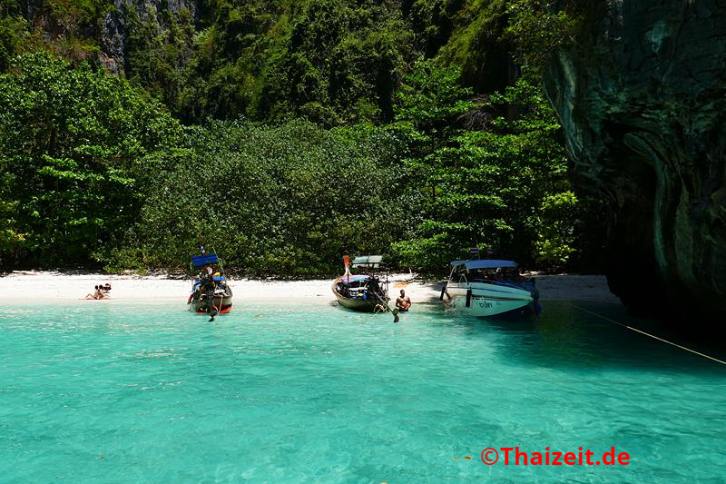 Das Paradies ist Geschichte. Aber Phi Phi ist immer noch eine Reise wert. Man muss eben nur genau wissen was man möchte. Mit dem Longtail auf die Seite der Run Tee Bay fahren lohnt sich, dort gibt es noch einige schlichtere Resorts, die etwas von dem alten Charme bewahrt haben. Und das Schnorcheln im kristallklaren Wasser lohnt sich!